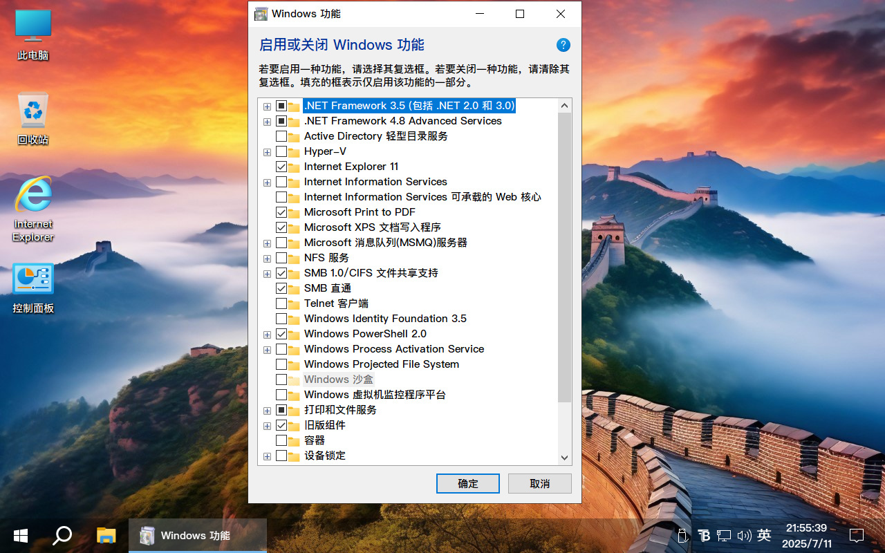 语音识别TTS、XBOX、打印、蓝牙、指纹、共享、微软账户、搜索、计算器、相机、照片、屏幕投影、平板模式、BitLocker、远程桌面、NFS 、IE浏览器、画图、截图、防火墙、WMP、旧版组件 、Hyper、Linux、Telnet