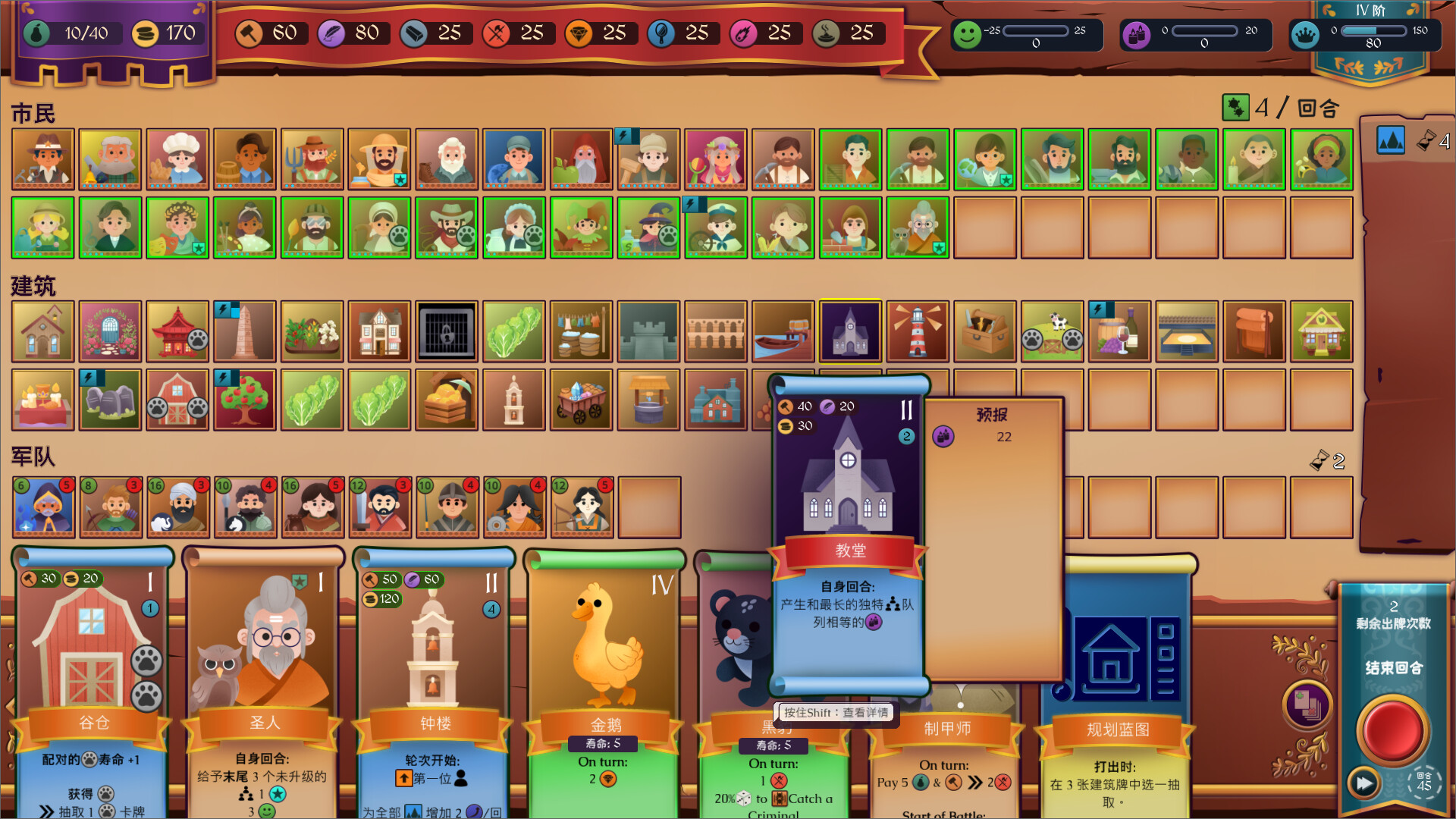 在这款回合制城市建设游戏中规划市民与建筑的连携来生产宝贵的资源,创造您完美的王国吧!王国的幸福需要维持,严酷的挑战需要抵御,而迈向繁荣的城市能解锁新的卡牌。