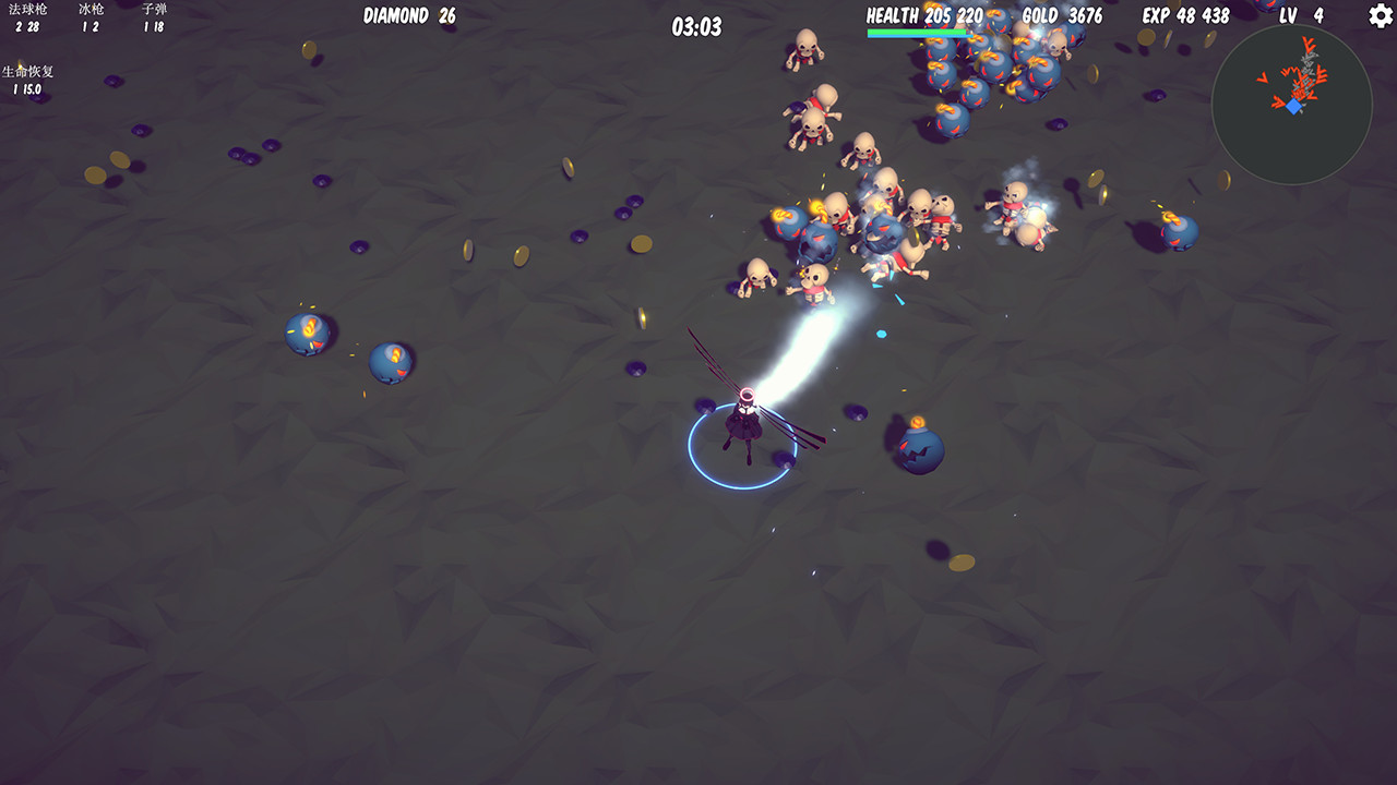 妖界生存是一款生存游戏,怪会主动攻击你,是一款休闲,女性主角,弹幕射击,可爱风格的游戏