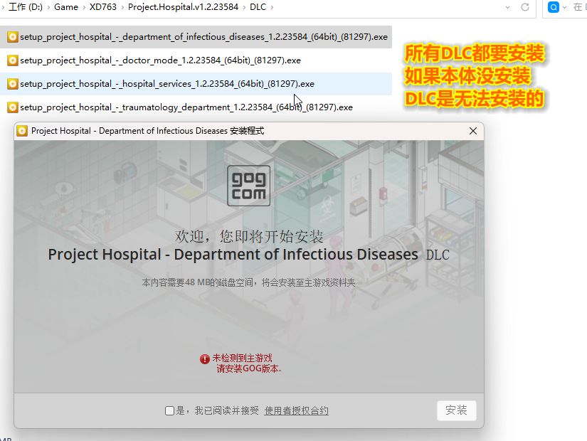 先安装游戏本体在依次去安装DLC,如果本体没安装DLC是无法安装的,全部安装完就可以玩耍了。
